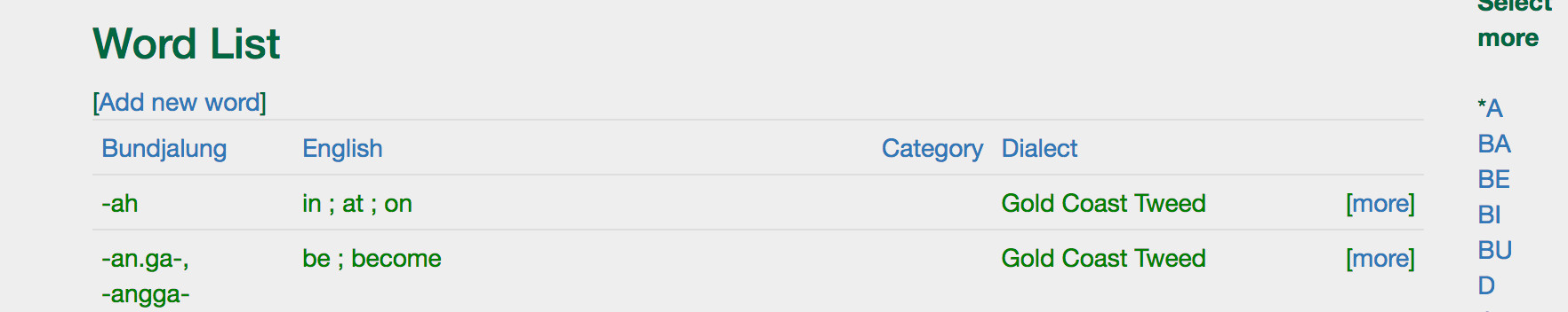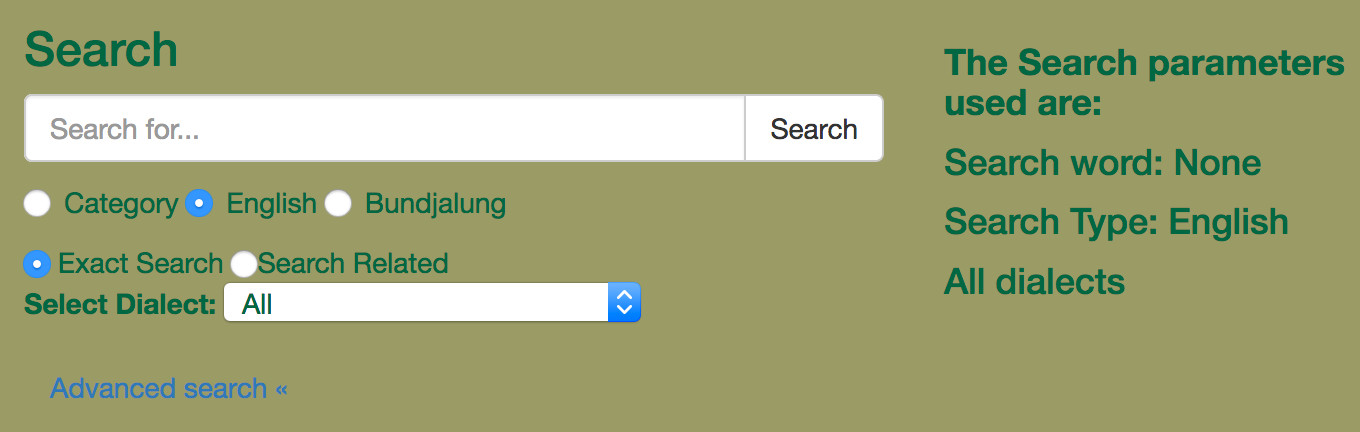 3. Select a Dialect to restrict the Bundjalung to one dialect (or ALL) - Using Advanced Search
